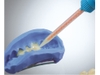 2. Sau khi mài cùi xong, bơm vật liệu tempofit vào khuôn lấy dấu ban đầu (bước 1), bơm vào chổ dấu răng cần làm răng tạm, lưu ý khi bơm phải cho đầu trộn ngập vào khuôn để tránh tạo bọt.