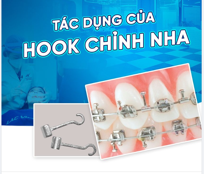 - Hooks cũng là một thành phần nhỏ trên đầu mắc cài, chúng được thiết kế để gắn dây thun liên hàm ở cả hàm trên và hàm dưới.