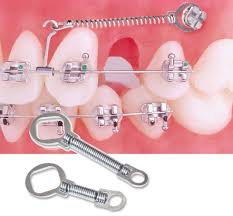 Lò xo kéo, lò xo đóng khoảng chỉnh nha trông giống như lò xo ruột gà với các vòng xoắn không chạm nhau, hai đầu lò xo gắn với 2 vòng tròn dùng để mắc vào hook, mắc cài hoặc núm dán để kéo các răng lại gần nhau. Lò xo kéo, lò xo đóng khoảng chỉnh nha được dùng có thể từ vật liệu thép hoặc Niti. Mỗi loại có các đặc tính khác nhau và mỗi loại tạo ra một kiểu lực khác nhau lên răng.