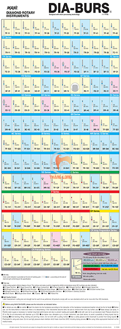 Mũi khoan kim cương của hãng Mani Nhật Bản, tính cắt tốt và độ bền cao, được nhiều bác sĩ trên khắp thế giới tin dùng.